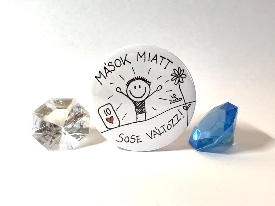A „Mindig van tovább” kitűző olyan, mint egy kitartó biztatás: bármi is történik, nincs vége a világnak.